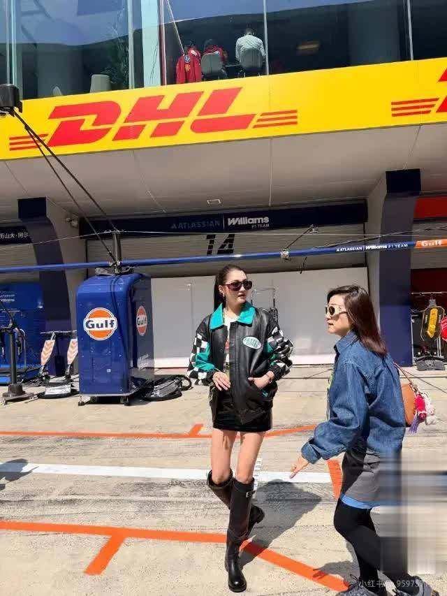 这次F1现场的穿搭,恰恰抓住了她的身材优势,简约的短裙加长筒靴,既符合赛事的氛围,又凸显了她的少女感和酷飒气质。