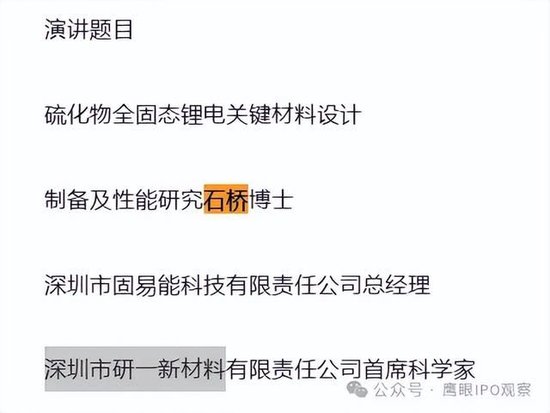 更受关注的是核心技术人员的多重任职情况。石桥先生是公司董事、首席科学家、核心技术人员。天眼查信息显示,石桥同时担任深圳市固易能科技有限责任公司的总经理、法定代表人,且是该公司多项专利的发明人。此外公开信息还显示,石桥还担任深圳市研一新材料有限责任公司的首席科学家,深度参与固态电池关键材料开发工作。作为尚水智能核心技术人员,石桥拥有多项与公司主营业务相关的专利,而其在另外两家企业的专利同样涉及新能源电池相关领域,这引发了市场对知识产权归属、研发资源占用的担忧。