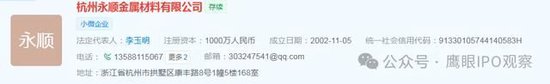 尚水智能员工跨界任职引发的合规性与业务独立性问题,成为公司IPO的另一大争议点。天眼查信息显示,尚水智能经理李玉明同时担任杭州永顺金属材料有限公司法定代表人,并持有该公司80%的股份,公开信息未明确披露两家企业是否存在潜在业务往来或关联交易,市场对其任职合理性及是否影响公司利益存在疑问。
